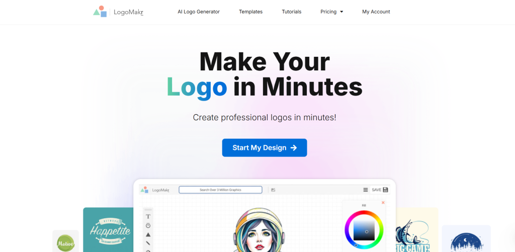 LogoMakr ابزاری ساده و کاربردی برای ساخت لوگو با هوش مصنوعی است. رابط کاربری آن بسیار آسان است و کاربران میتوانند بهراحتی شکلها، رنگها و فونتها را ویرایش کنند. این سایت برای کسانی که دنبال لوگویی ساده و فوری هستند، گزینهای مناسب و سریع به حساب میآید.