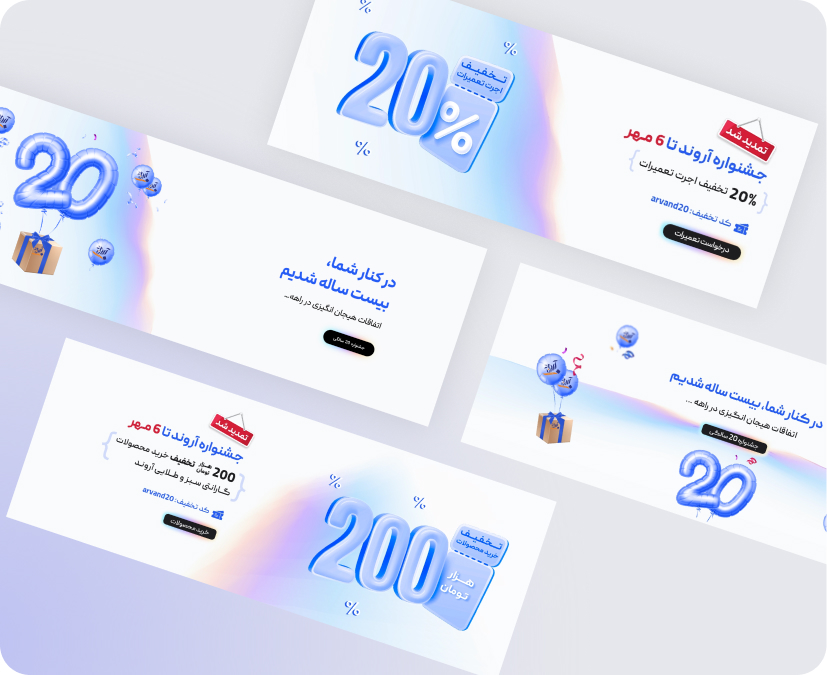 گارانتی آروند، یکی از برندهای پیشرو در حوزه تکنولوژی و فروش محصولات دیجیتال، در سالگرد بیستسالگی خود در سال 1403 با رویکردی تازه و انرژی مضاعف به استقبال آینده رفت. برای این رویداد ویژه، تیم خلاقیت و طراحی ما مجموعهای کامل از اقلام تبلیغاتی و هویتی شامل پاپآپ، رولآپ، کارت ویزیت، بنر و لیبل را طراحی و اجرا کرد تا هویت بصری جشن، همراستا با ارزشهای برند اجرا شود.