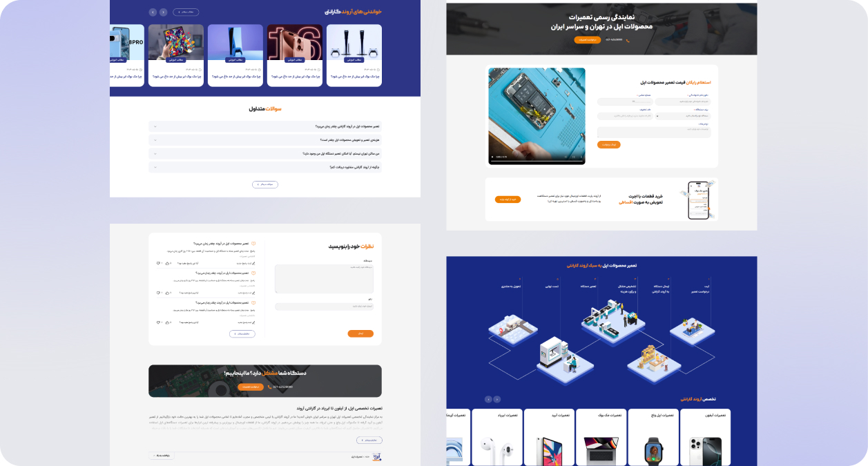 برای مجموعه آروند، طراحی اختصاصی صفحات داخلی و لندینگها را اجرا کردیم؛ بهگونهای که بخشهای خدمات، پرسشهای متداول و فرمهای تماس، کاملاً با هویت بصری برند همراستا باشند. حاصل این فرآیند، تجربه کاربری یکپارچهتر و افزایش تعامل و اعتماد کاربران بود.
