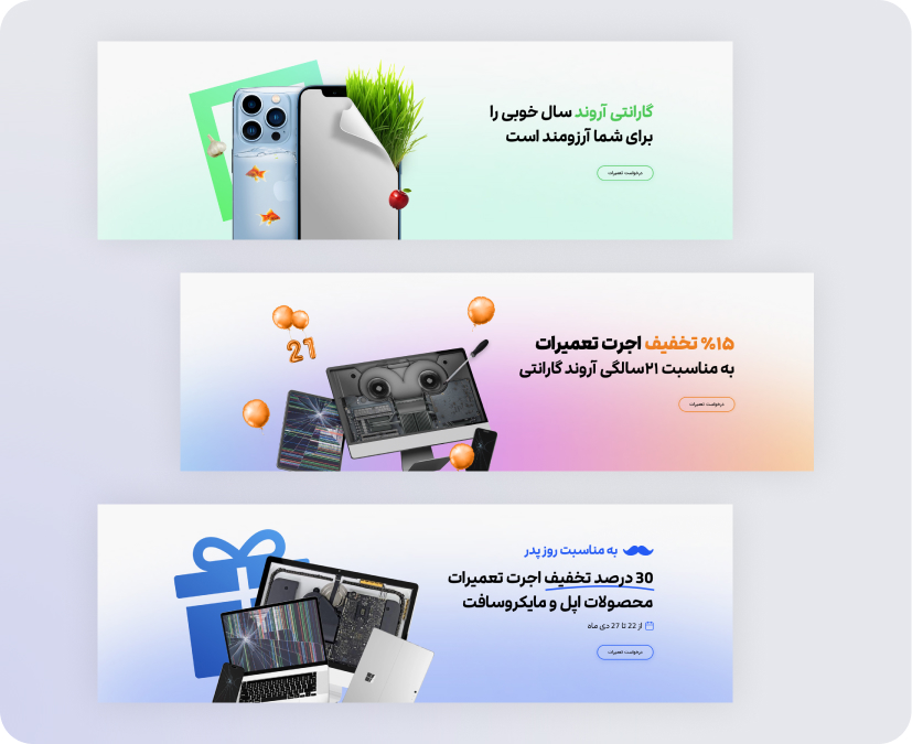 طراحی اختصاصی بنر و صفحات آروند پارت و آروند شاپ